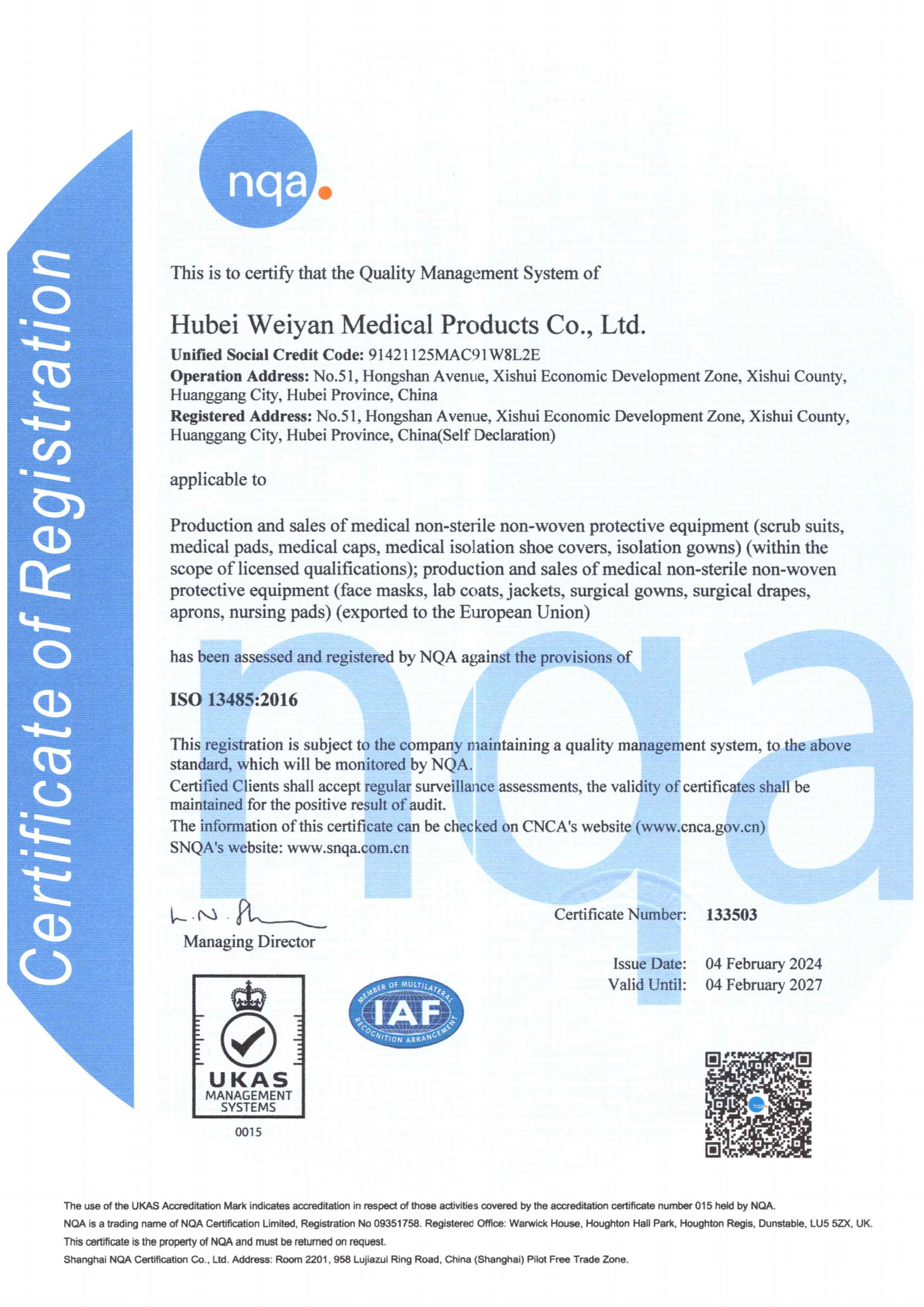 • Qualification certificate